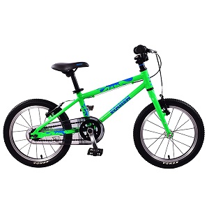 16 inch wheels with 9 inch frame, ideal for children 4 years and above / Shortened crank arms and stem to fit young children much better / Junior Specific V-Brakes / CNC braking surface on rims for added power and durability / Fully enclosed chainguard to keep clothes (and curious fingers!) protected / Complete weight just 6.3kg