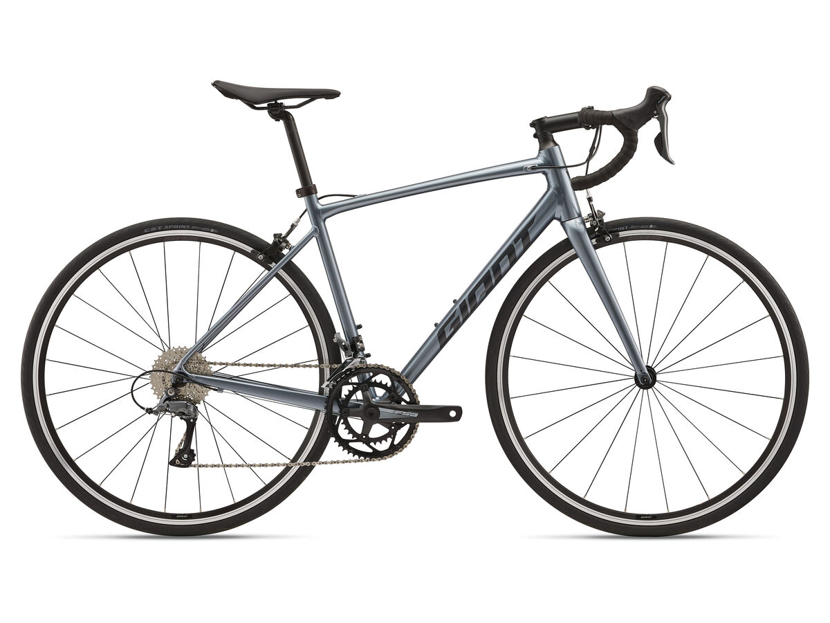 Style | Smooth, fast and fun. This versatile aluminum road bike helps you push the pace, ride more miles, and expand your road riding experience.ALUXX Aluminium Technology - This Performance level frame material features 6061 alloy with single-butted tubes to produce strong, lightweight framesets for a variety of different bikes and riding styles. Compact Road Design - Introduced by Giant with the professional Team ONCE in the 1990s, Compact Road revolutionized the look and feel of high-performance road bikes forever. A downward sloping toptube (from the headtube to the seattube) creates smaller front and rear triangles for a lighter, stiffer bike. It also makes it easier for riders of all sizes to have a perfect fit. D-Fuse Technology - The D-Fuse seatpost and handlebar were designed to function as a system, absorbing road shocks and vibrations so you can ride farther, faster. OverDrive - Giant's original oversized fork steerer tube technology. Designed to provide precise front-end steering performance, the system's oversized headset bearings (1 1/4" lower and 1 1/8" upper for road, 1 1/2" lower and 1 1/8" upper for mountain) and tapered steerer tube work in conjunction to provide optimal steering stiffness. Specifications:Sizes XS, S, M, M/L, L, XLColours Knight Shield Frame ALUXX-grade aluminum Fork Advanced-grade composite, full-composite OverDrive steerer Shock Handlebar Giant Connect XS:40cm, S:40cm, M:42cm, M/L:42cm, L:44cm, XL:44cm Grips Velo cork tape Stem Giant Sport XS:80mm, S:90mm, M:100mm, M/L:110mm, L:110mm, XL:110mm Seatpost Giant D-Fuse, alloy, 14mm offset Saddle Giant Approach Pedals PEDALS NOT SUPPLIED Shifters Shimano Claris Front Derailleur Shimano Claris Rear Derailleur Shimano Claris Brakes Tektro TK-B177 Brake Levers Shimano Claris Cassette Shimano CS-HG50, 11x34 Chain KMC Z72 Crankset FSA Tempo, 34/50 XS:170mm, S:170mm, M:172.5mm, M/L:172.5mm, L:175mm, XL:175mm Bottom Bracket cartridge Rims Giant S-R3 wheelset, alloy Hubs Giant alloy Spokes stainless Tyres CST Sprint, 700x28c (30mm) Extras fender mount, 28mm max tire size Max Tyre Clearance 28mm |